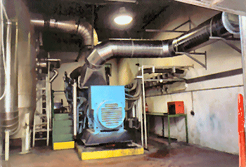 | גנרטור, צד קדמי של מנוע-כניסת אויר ויציאת גזי פליטה ודוד חום גזים לקיטור |
